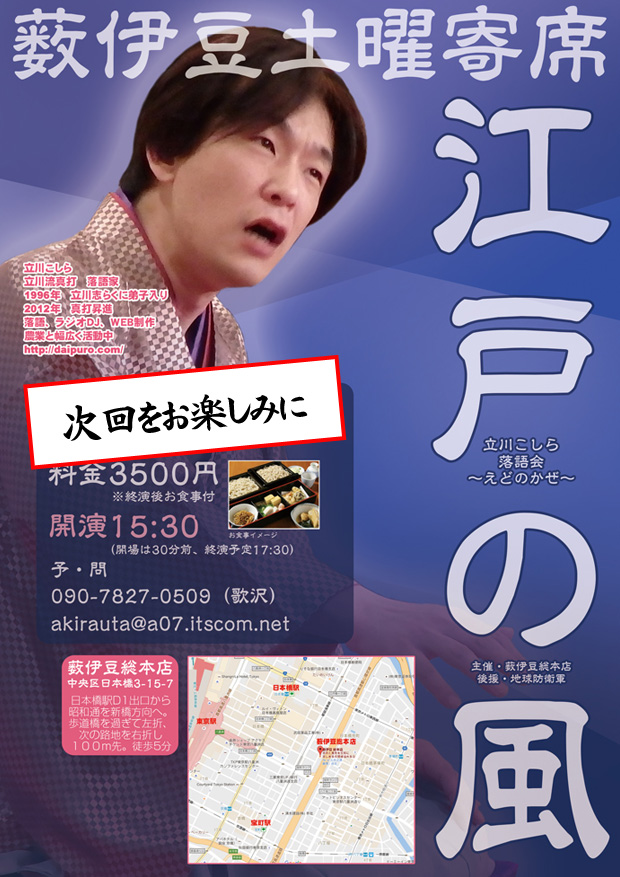 薮伊豆土曜寄席「第21回 立川こしら 江戸の風」