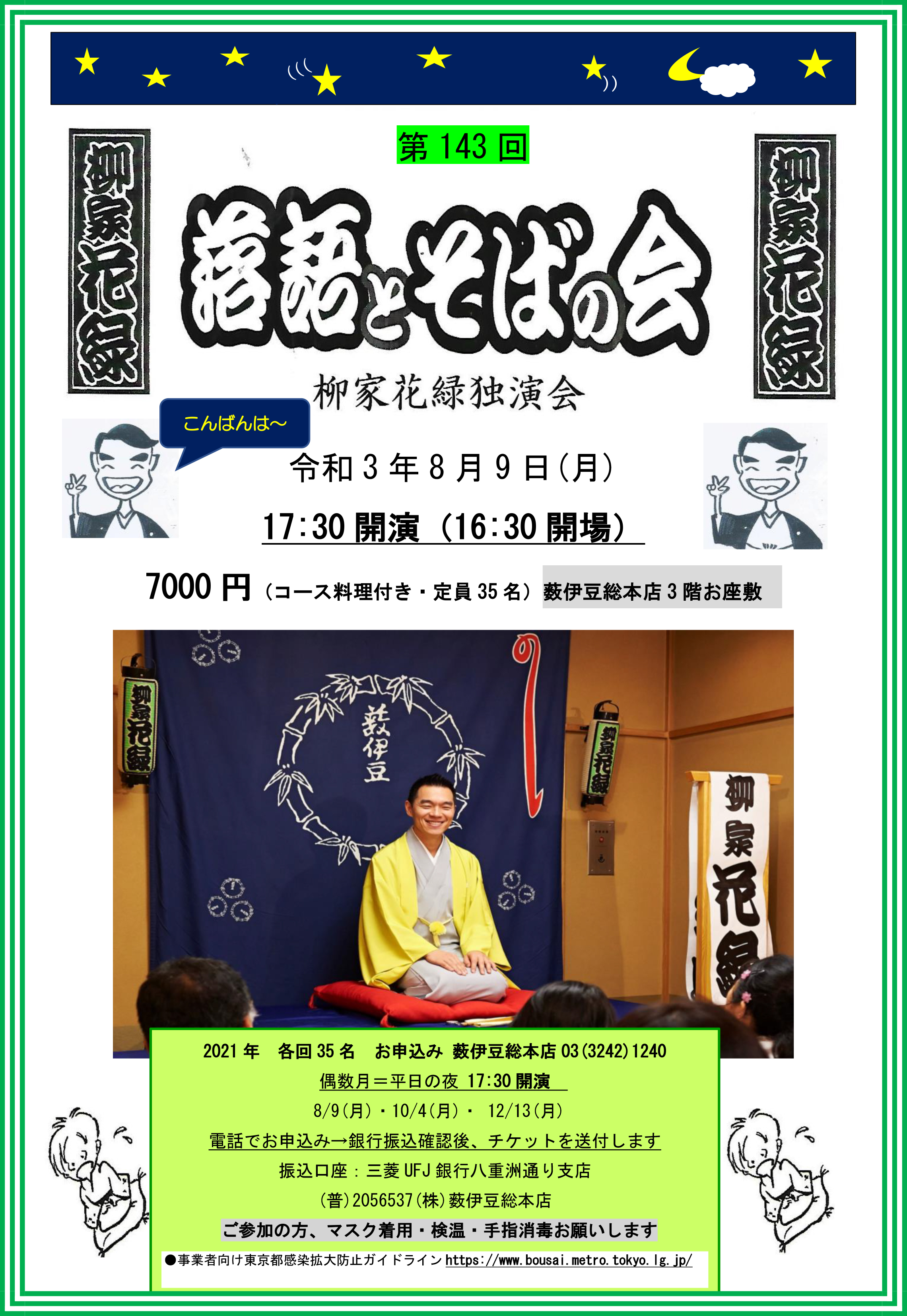 6月14日(月)柳家花緑独演会「落語とそばの会 第141回」を参加の人数を縮小して開催しました。