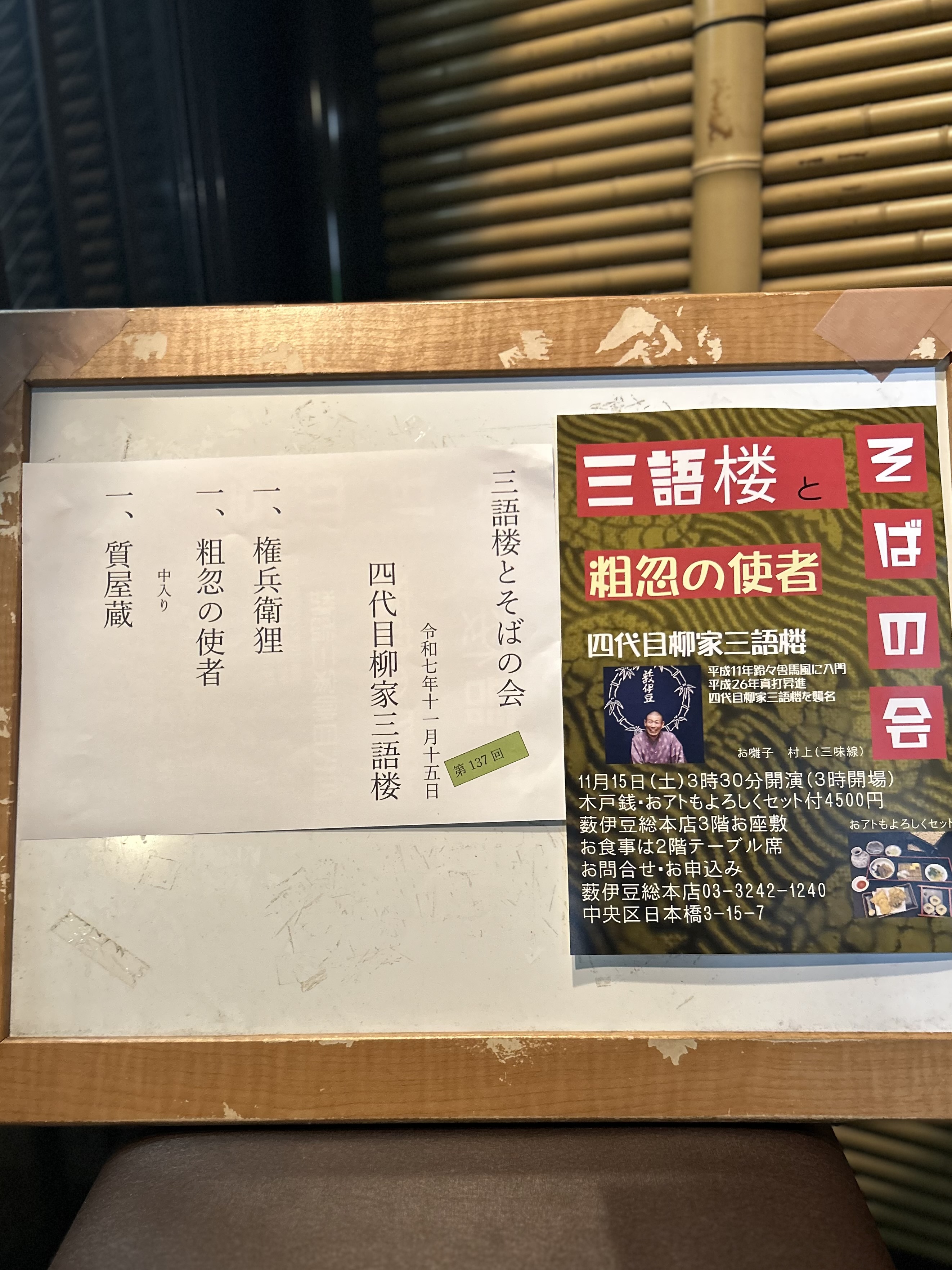 次回は12月20日(土)三語楼とそばの会第138回です。