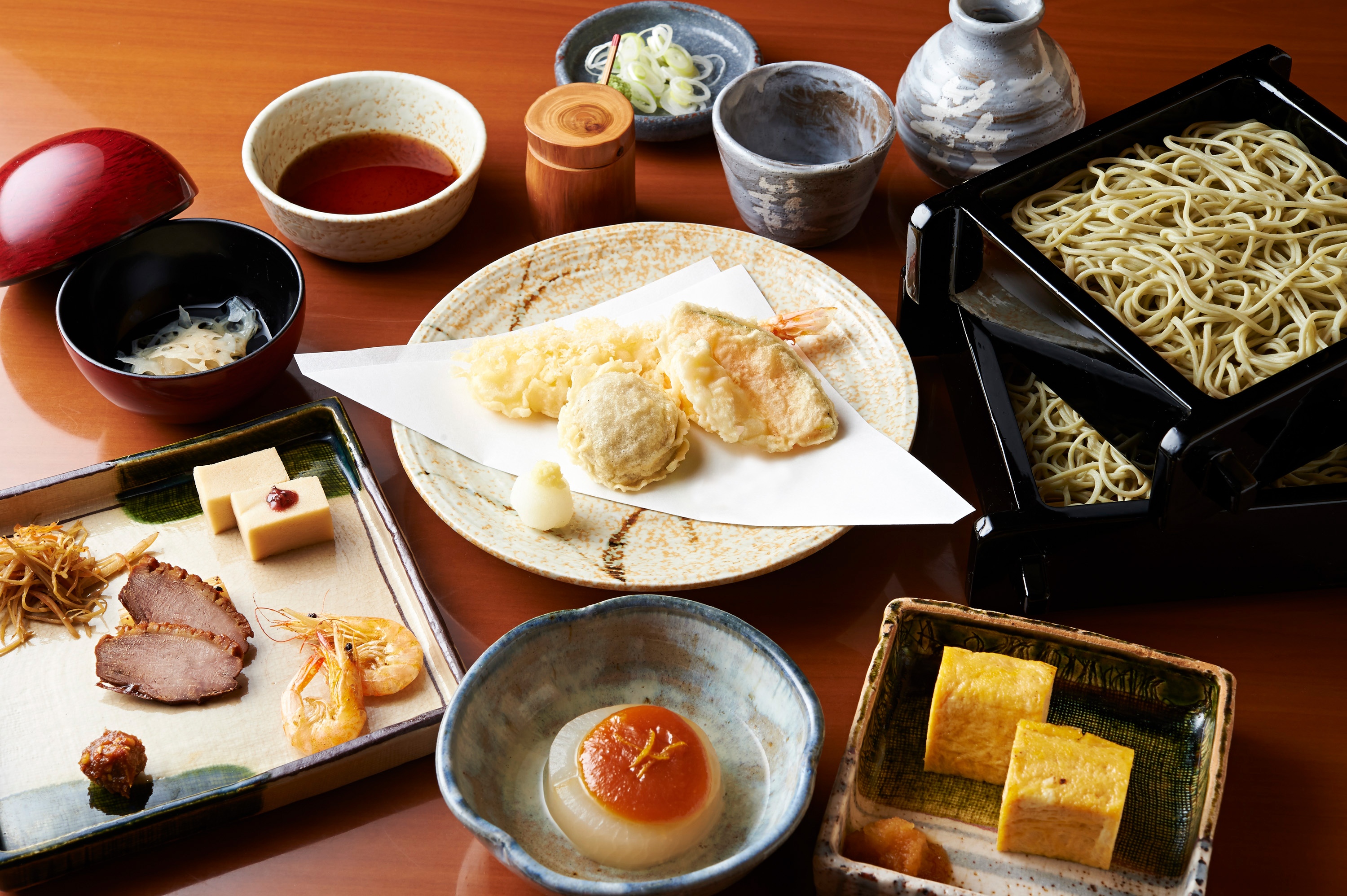 八寸(蕎麦味噌・芝海老の唐揚げ・高野豆腐・きんぴら・煮鴨)・