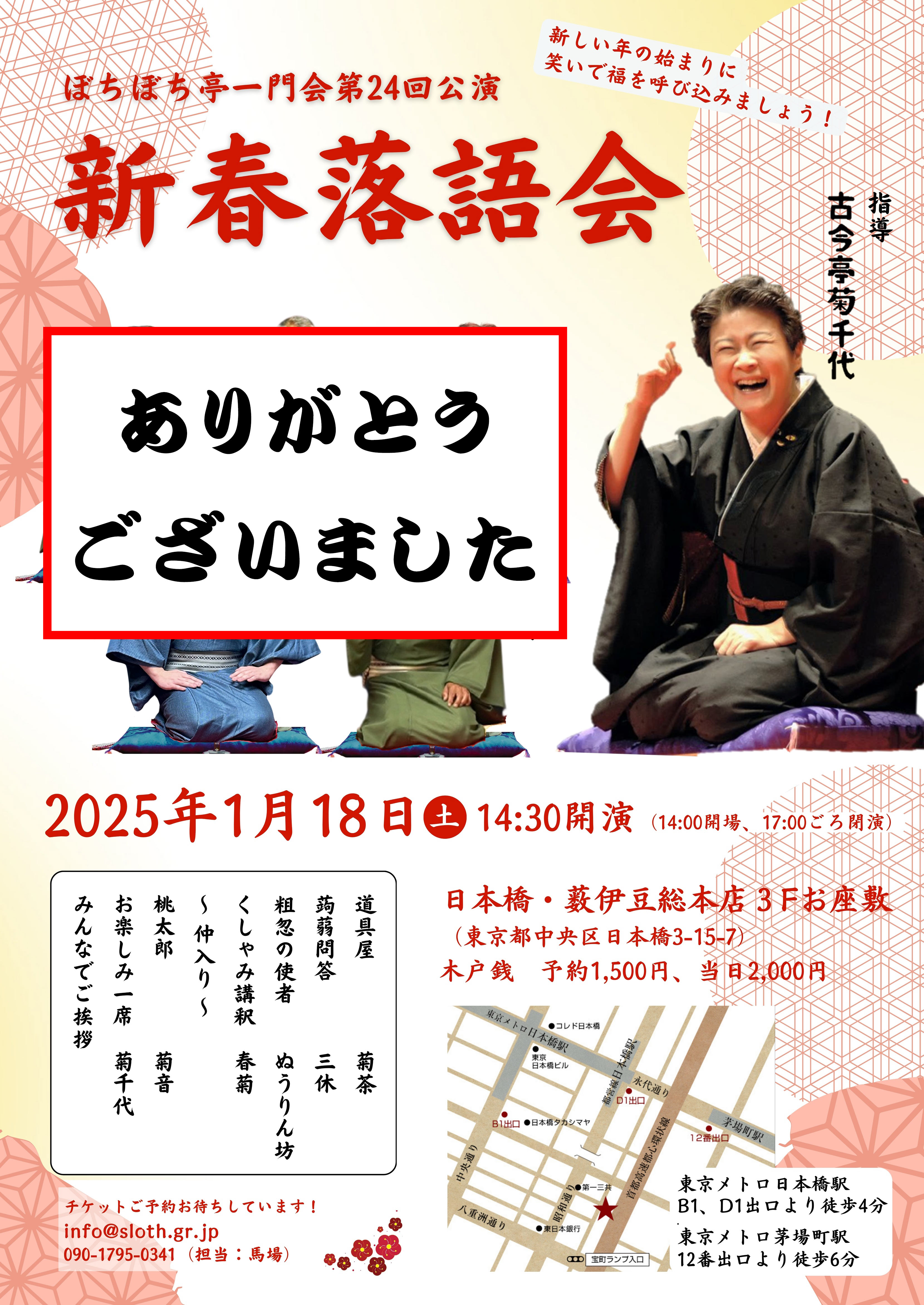2月15日(土)薮伊豆寄席「帰ってきた彩大 ちきり伊勢屋(上・下)」を開催します。